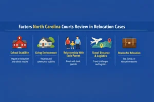 Relocation cases often involve detailed evaluation of parenting schedules, travel logistics, and the child’s ongoing relationship with both parents. Courts reviewing child relocation custody North Carolina disputes focus primarily on stability and the practical effects of distance on the child’s daily life.