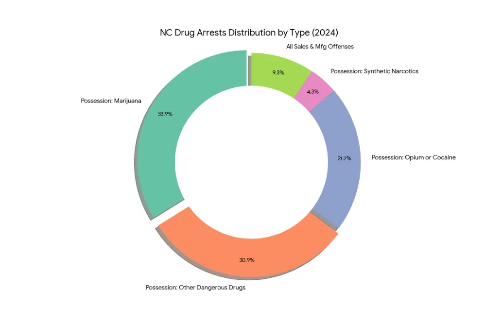 Distribution of Drug Arrests by Offense Type in North Carolina (2024)